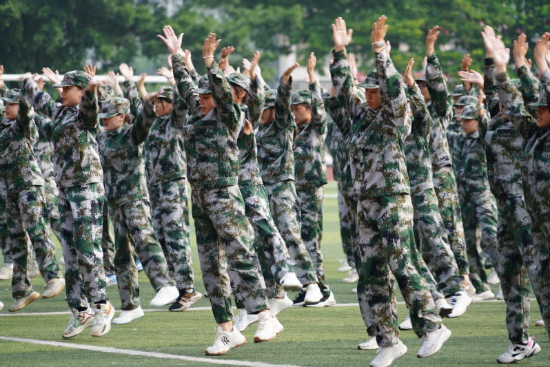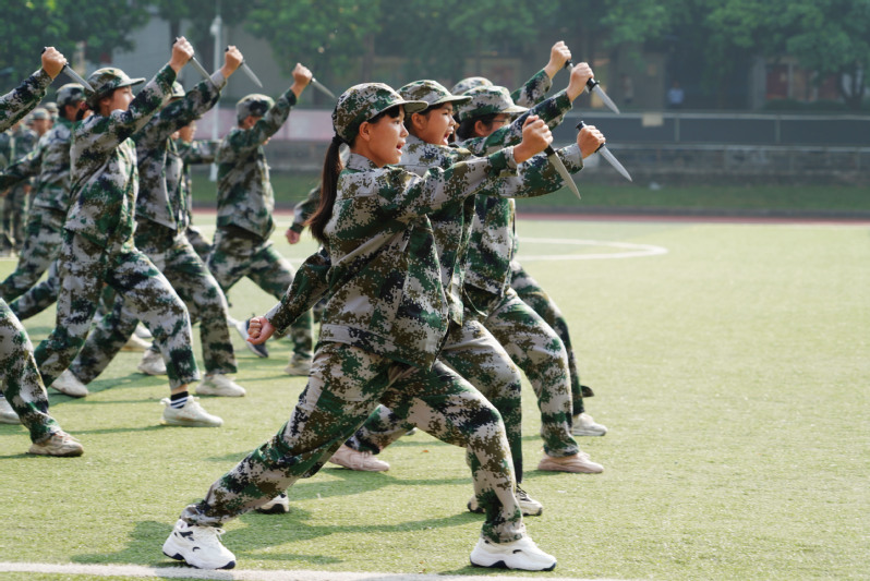 大会在庄严的国歌中拉开了帷幕,各方阵以饱满的军容、挺拔的身姿、洪亮的口号、整齐划一的步伐亮相。分列式后,进入军事训练方阵表演,有擒敌拳、匕首操、舞蹈等,充分展示了11天的训练成果,也展现出新一代bevictor伟德官网学子青春的自信与昂扬。最后,全体新生通过手语操《国家》表达了对祖国母亲繁荣昌盛的深切祝福,请党放心,强国有我!