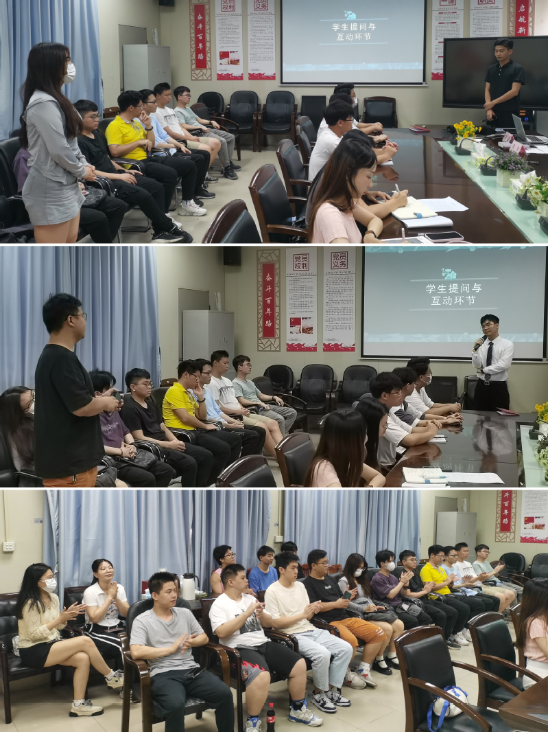 交流互动环节来自不同专业的同学们踊跃提问、虚心请教。两位员工导师结合自身实践经历、真诚热情而切合实际地回答同学们的各类提问,解答了同学们的疑虑,为大家指明方向。大家在轻松活跃的氛围中畅所欲言、热烈讨论,在场同学们收获良多、受益匪浅。